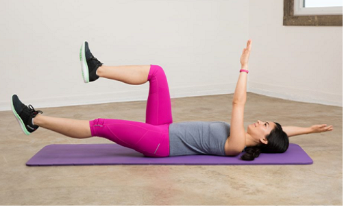 - 누워서 하는 운동. 양다리를 벌렸다가 붙이는 자세