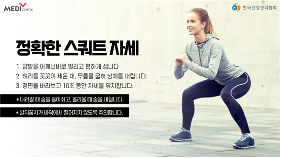 - 체력이 약하신 분들은 벽에 기대어서 상체를 내려오는 자세로 진행