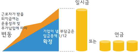 ※ 확정기여형 퇴직금 = 매년 임금총액의 1/12 부담금 +(-) 운용수익.