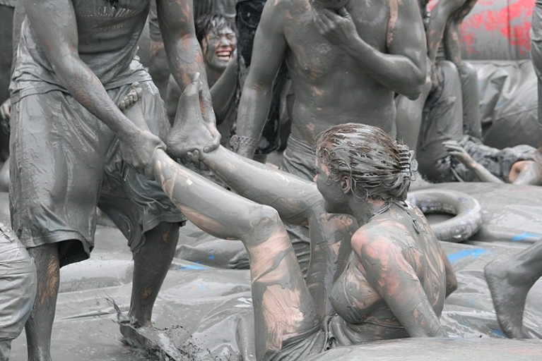 그래서 보령머드축제에서는 온몸에 머드를 바르고 놀 수 있죠.