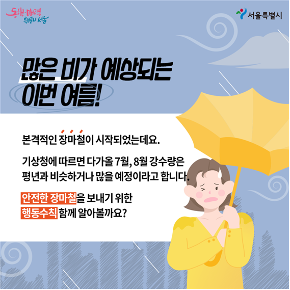 장마철에는 다양한 재해에 노출될 수 있습니다. 가장 흔하게 겪을 수 있는 안전 문제에 대해서는 미리 대비하는 것이 중요합니다.