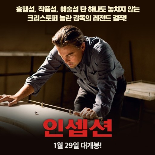 시간, 규칙, 타이밍 모든 것이 완벽해야만 하는 단 한 번도 성공한 적 없는 인셉션 작전이 시작됩니다. 타인의 꿈에 들어가 생각을 훔치는 특수 보안요원 코브. 그를 이용해 라이벌 기업의 정보를 빼내고자 하는 사이토는 코브에게 생각을 훔치는 것이 아닌, 생각을 심는 인셉션 작전을 제안합니다. 성공 조건으로 국제적인 수배자가 되어있는 코브의 신분을 바꿔주겠다는 거부할 수 없는 제안을 하고, 사랑하는 아이들에게 돌아가기 위해 그 제안을 받아들입니다. 최강의 팀을 구성, 표적인 피셔에게 접근해서 인셉션 작전을 실행하지만 예기치 못한 사건들과 마주하게 되는데 이 영화의 중심인물인 돔 코브는 사람들의 꿈을 파고들고 잠재의식에서 귀중한 정보를 끌어낼 수 있는 숙련된 도둑입니다. 하지만 일이 잘 풀리지 않아 아내를 살해했다는 누명을 쓴 후 코브는 도망자가 되어 미국 아이들의 품으로 돌아갈 수 없습니다. 코브는 사이토라는 부유한 사업가에 의해 자신의 이름을 밝히고 집으로 돌아갈 기회를 받았습니다. 대신 코브는 누군가의 잠재의식에 아이디어를 심어주는 과정인 '창조'를 실행해야 합니다. 사이토는 코브가 회사의 독점 상태를 타파하기 위해 강력한 에너지 회사의 후계자인 로버트 피셔 주니어 씨의 머리에 이 아이디어를 심어주길 바라고 있습니다. 코브는 파트너 아서, 아리아드네라는 이름의 건축가, 임스라는 이름의 위조자, 유수프라는 이름의 화학자를 포함한 전문가팀을 구성합니다. 그들은 잠재의식 속에 아이디어를 심어주기 위해 피셔의 꿈에 들어가지만 많은 장애물을 만나게 됩니다. 꿈의 세계를 항해할 때, 그들은 피셔 자신의 잠재의식 투영에 대처해야 합니다. 피셔 자신의 잠재의식 투영에는 그의 사업상 결정에 반대하는 아버지와 아버지의 죽음에 대한 죄책감이 포함됩니다. 또한 호텔 복도에서 무중력 상태의 싸움을 하거나 꿈의 세계의 불안정으로 인해 도시가 붕괴되는 등 위험한 상황에도 직면하고 있습니다. 코브는 꿈속에 나타나 그들의 임무를 방해하겠다고 위협하는 아내 마루의 기억에 사로잡혀 있습니다. 그는 그녀의 죽음에 대한 죄책감에 맞서 임무를 완료하기 위해 아직 꿈을 꾸고 있다는 사실을 받아들여야 합니다. 영화의 결말은 해석에 맡겨져 있어 코브가 아직 꿈을 꾸고 있거나 영화 전체가 꿈일 가능성이 시사되고 있습니다. 결말의 모호함은 영화의 영구적인 인기와 비평가들의 칭찬에 기여했습니다.