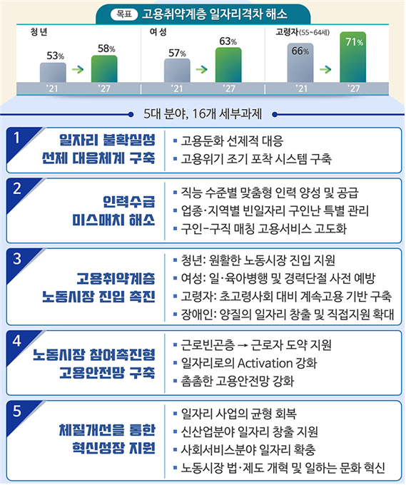 · 노동시장 참여 촉진 방향으로 고용 안전망 구축 계획